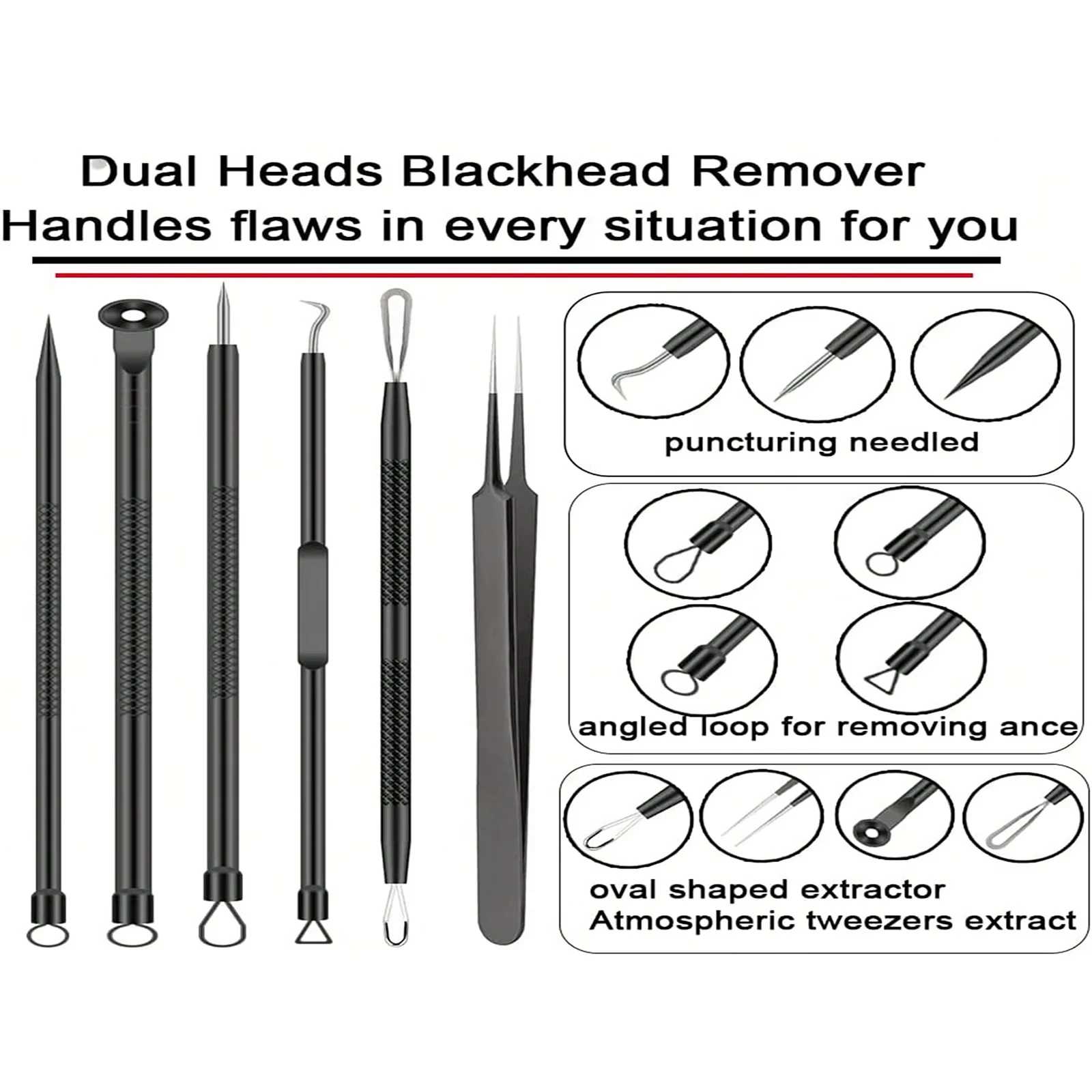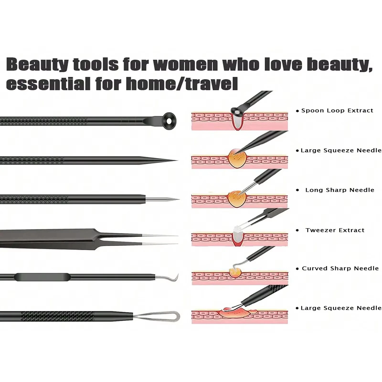 Keep your skin clear and smooth with this Pimple Popper & Blackhead Remover Kit. This 6-piece stainless steel tool set is designed to safely and effectively remove pimples, blackheads, whiteheads, and comedones without damaging the skin. Each tool offers precision and control for targeted blemish care, helping you maintain a clean, healthy complexion. Compact and hygienic—perfect for home or professional skincare use.